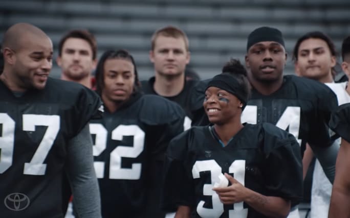 Toyota’s new RAV4 Hybrid commercial stars Antoinette Harris, one of very few female players to have earned a college football scholarship. "Toni" pushed Toyota to the top of Kelley Blue Book’s Super Bowl brand-volume rankings.