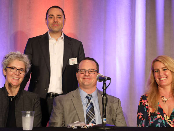 Tariq Kamal (standing) of Auto Dealer Today and F&I and Showroom helmed "Where the Rubber Meets the Road," a dealer panel staffed by (from left to right) Lori Church of John Elway Dealerships, Lee's Summit (Mo.) Honda's Jason Heard, and Sue Wilke of Rockettown Honda and Rockettown Chrysler Dodge Jeep Ram.