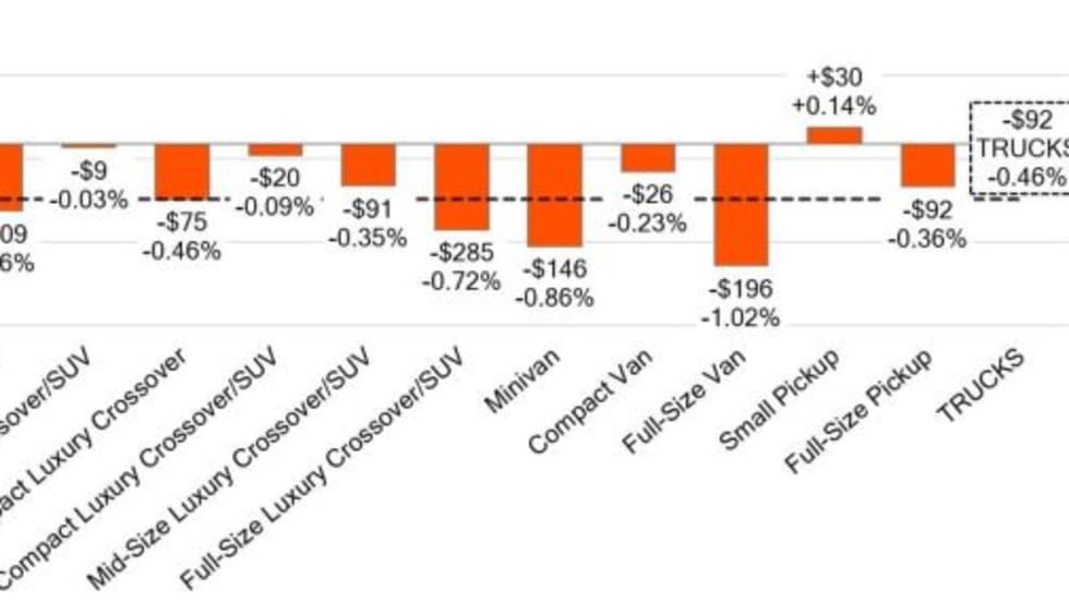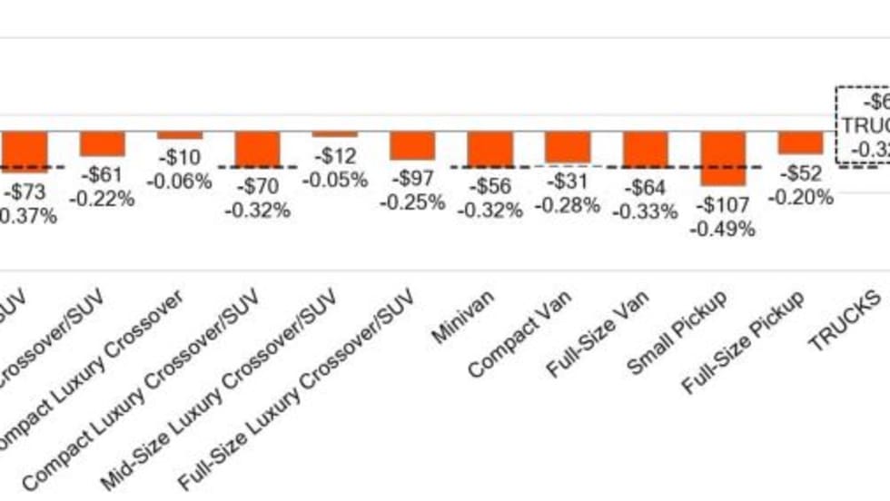 The compact car segment rose slightly last week, the third increase in a month that it's moved up.