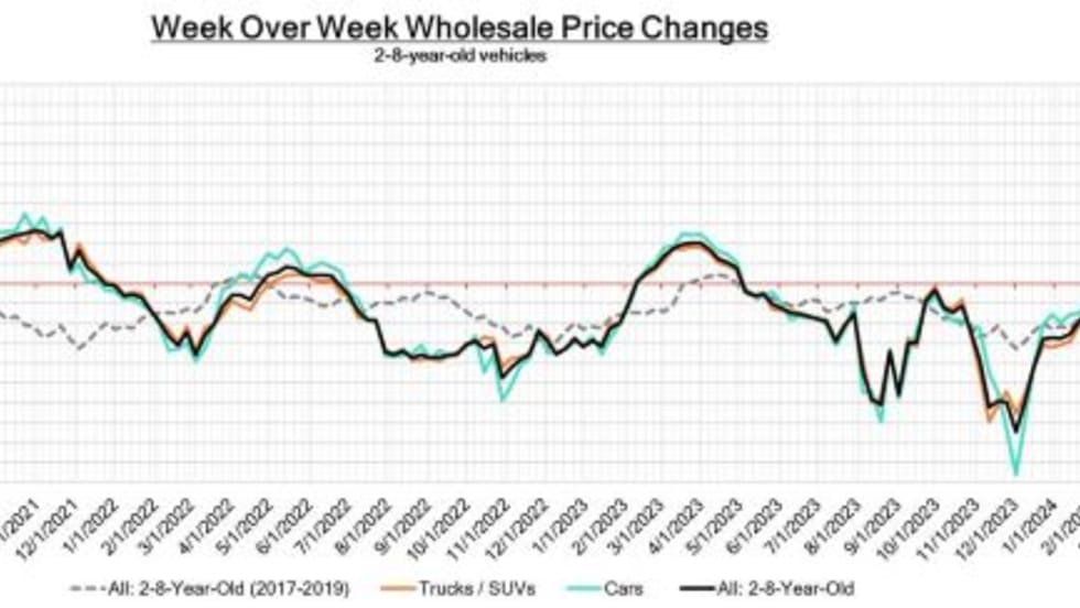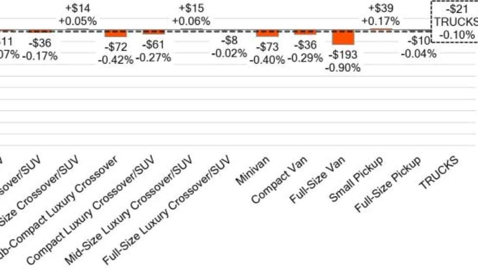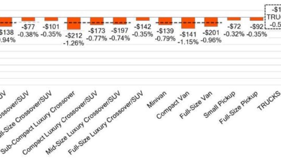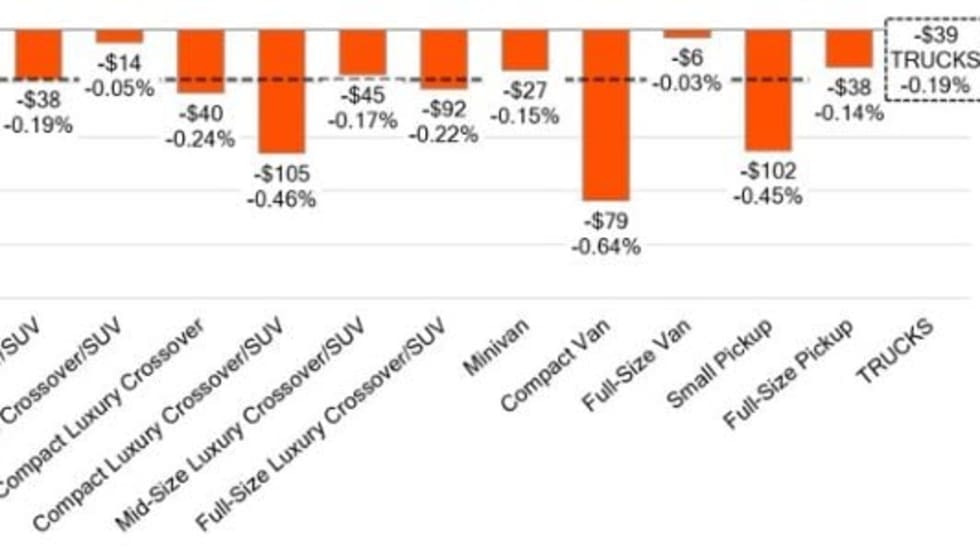 All vehicle segments declined last week in the wholesale market.