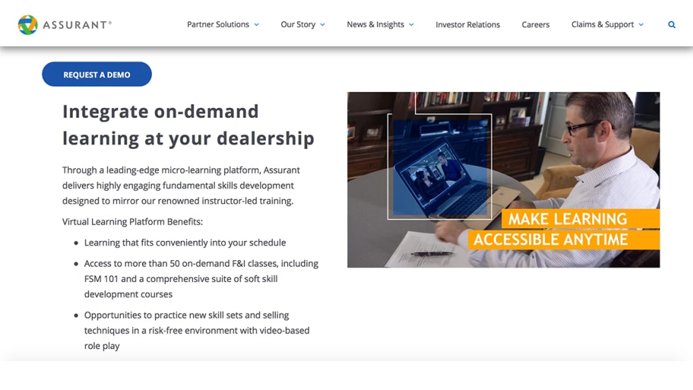 New “Salesperson Training” modules available in Assurant Virtual Learning Platform, furthering multi-channel training offerings to dealers.