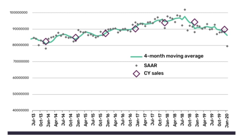 Global light vehicle sales figures from the first month of 2020 show just 6.2 million were sold in January, the lowest monthly figure since January 2012.