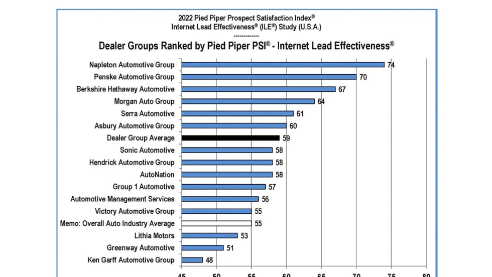 Napleton Auto Group topped the ranking, followed by Penske Automotive Group in the second spot, and Berkshire Hathaway Automotive in the third.