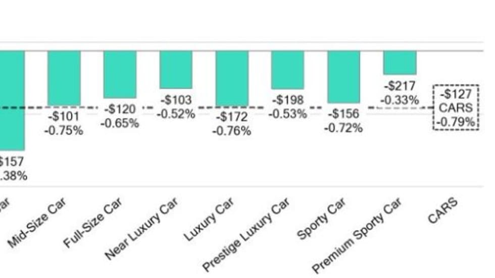 Midsize luxury and subcompact luxury crossover segment depreciation quickened last week amid overall declines.